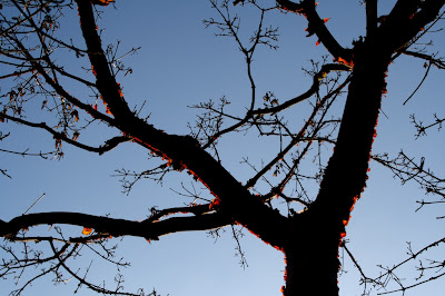 The sunset was just red enough to make me hope for clear skies for tomorrow's walk through meadows I love, beside a river I greet daily. It felt like a sunset of great promise.